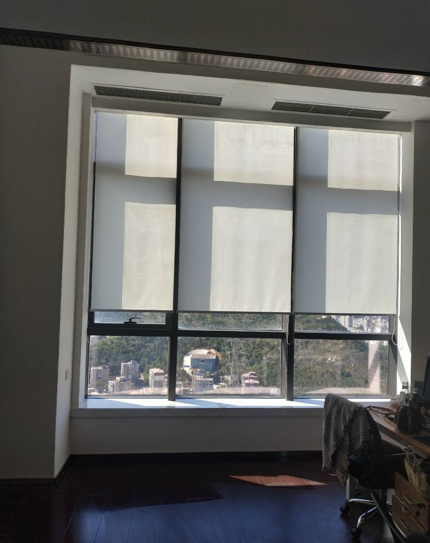 大连办公室窗帘选用遮阳透景卷帘,遮阳透景,可以眺望远方